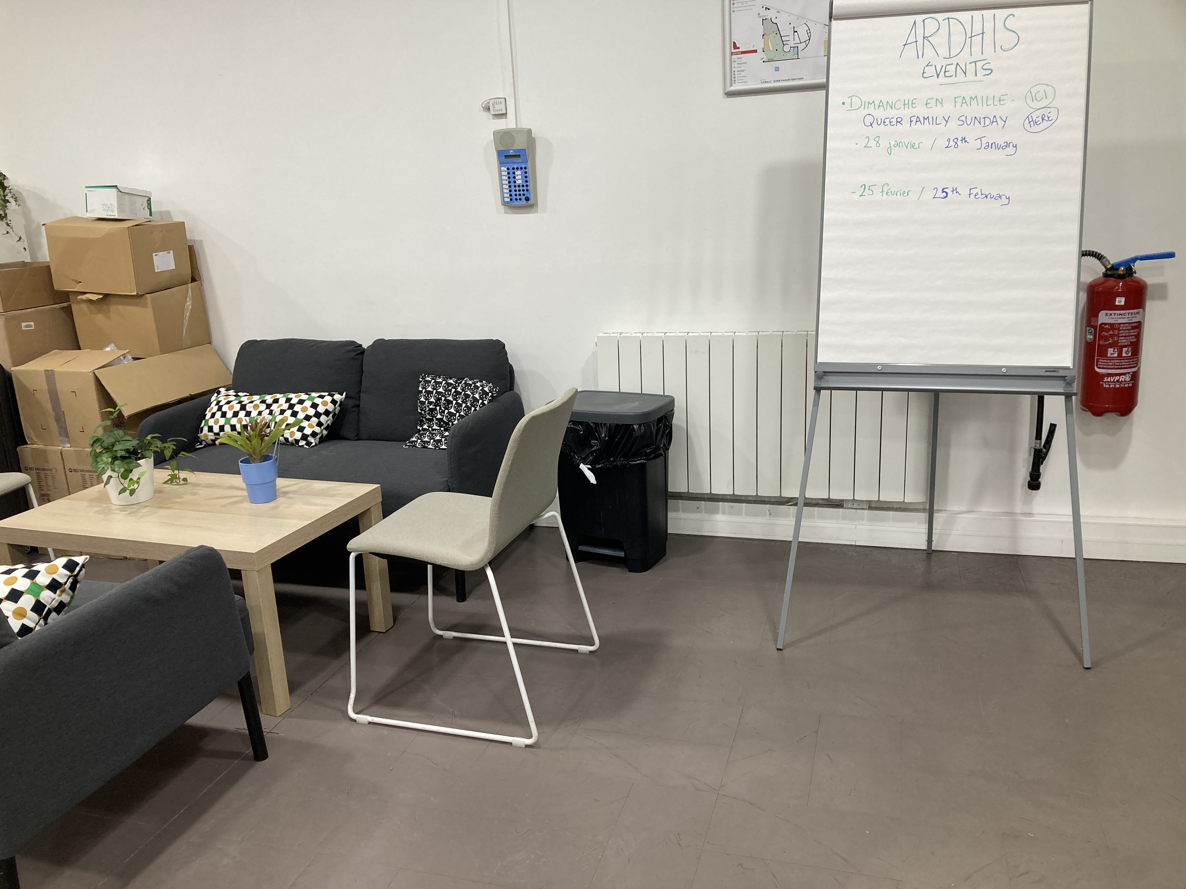 Un lieu accessible aux PMR, inclusif (races, genres) avec tout plein de bureaux et d’espaces de collaboration pour les associations lgbtqia+ de la région. Il y a un ascenseur, un coin cuisine, des sachets de thés et de tisanes en libre service, une bouilloire à chaque étage… et une immense salle tout en bas qui peut accueillir une soirée dansante ! Il y a la wifi et c’est dans un quartier on ne peut plus gai : le Marais !
